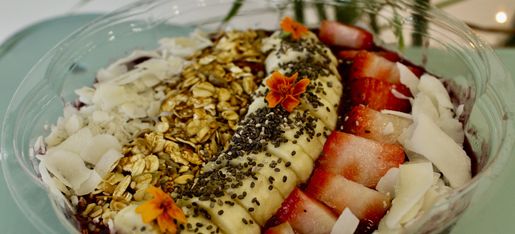Enjoy our rich organic açaí berry base, blended with lemon and aloe water, perfect for a refreshing açaí bowl. It's topped with fresh fruit, coconut, granola, and drizzled with honey, making it a delightful complement to your coffee or a great pairing with our cold pressed juice and organic smoothies. Don't forget to try our wellness shots for an extra boost!
